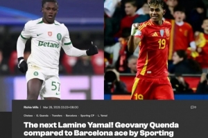 葡萄牙体育教练蒂亚戈-特谢拉在谈到昆达时,将他与亚马尔做了对比,他说:“我发现他们两人有相似之处,比如都是在16、17岁时就开始参加顶级联赛。亚马尔已经是西班牙国脚,而昆达也刚刚被葡萄牙队征召,我相信他在未来多年都将是国家队的常客,并且能够在欧冠赛场大放异彩。
